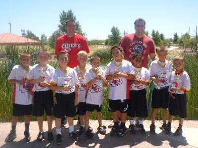 Warren coached the 2nd/3rd grade Kansas City Chiefs team for Preston and his friends. We are in a really competative league. This team made it to the top three out of 25 teams. They got to play on the finals day. Not very many teams make it this far, and we are really proud of them!!!